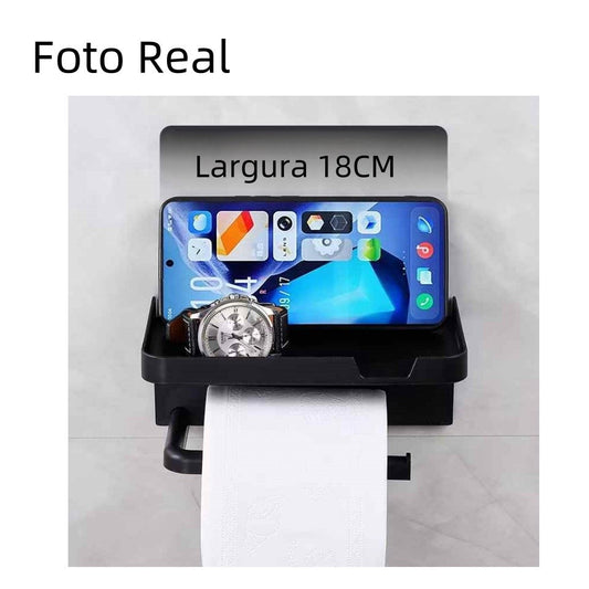 Porta-Papel Higiênico com Suporte para Celular e Fixação Adesiva