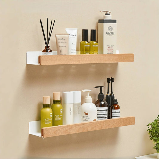 Prateleira Adesiva para Banheiro em Estilo Madeira e Ferro (Sem Furação)