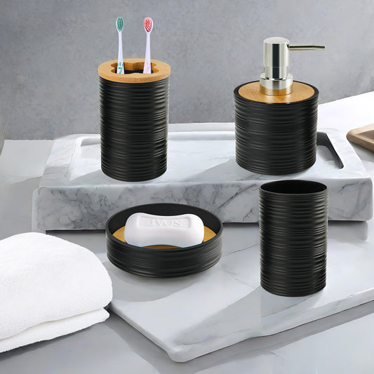 Conjunto para Banheiro 4 Peças em Bambu e Resina
