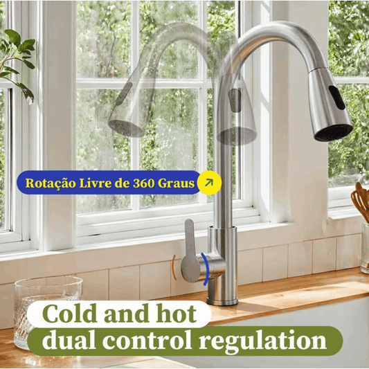 Torneira de Cozinha Gourmet em Aço Cromado com Extensor