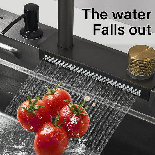 Torneira de Cozinha Luxo com Cascata e Bica Extensível em Inox 304
