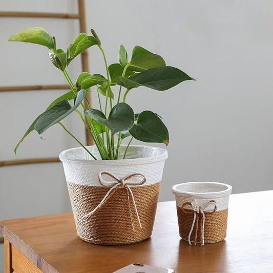 Cesto Cachepot de Fibra Natural com Revestimento Interno