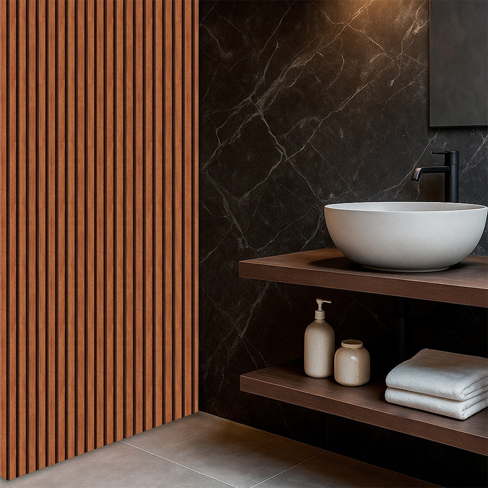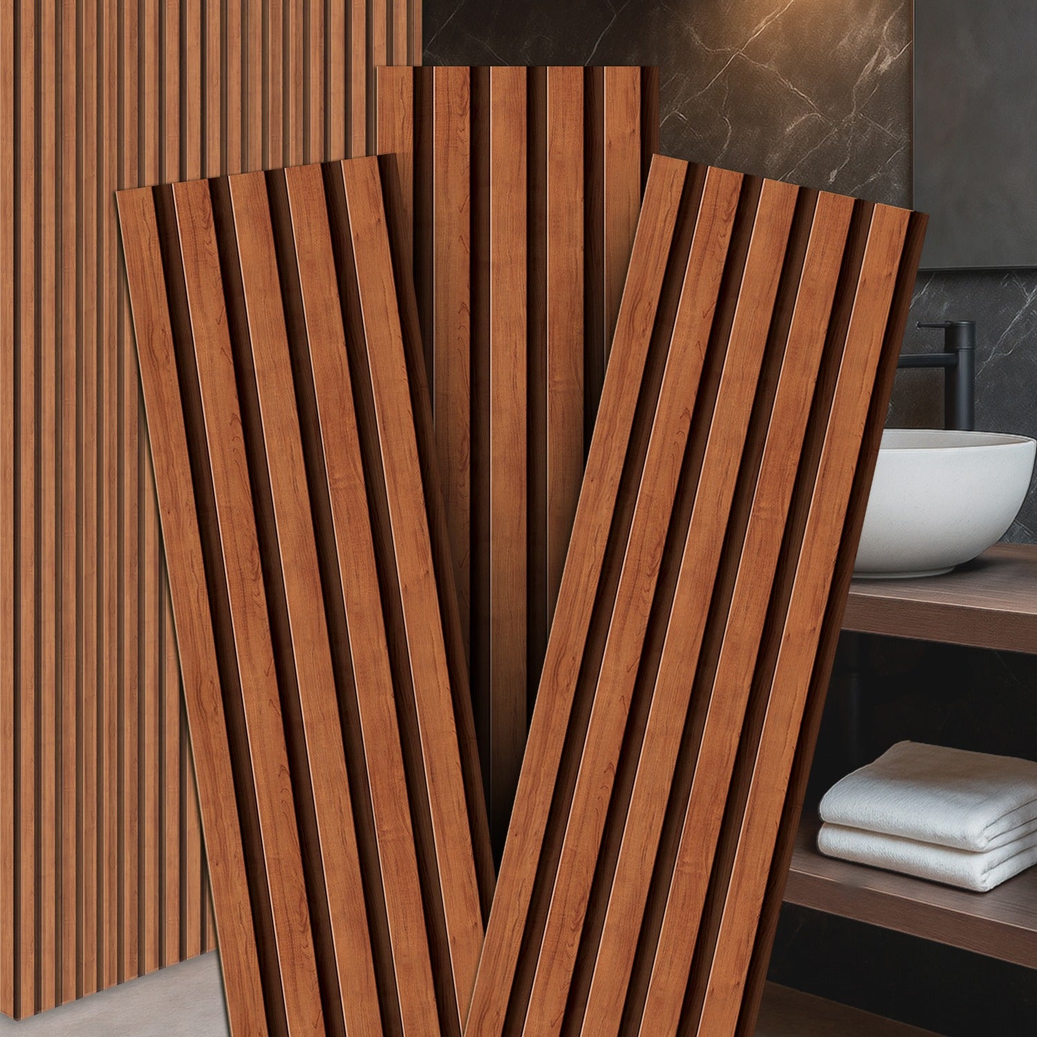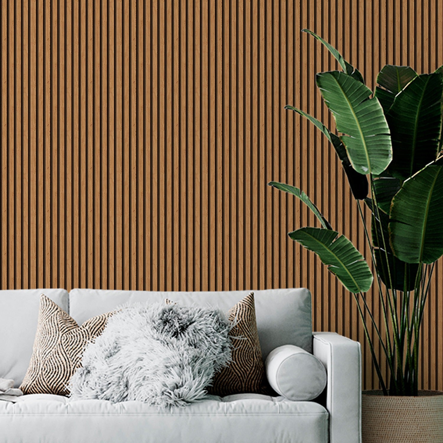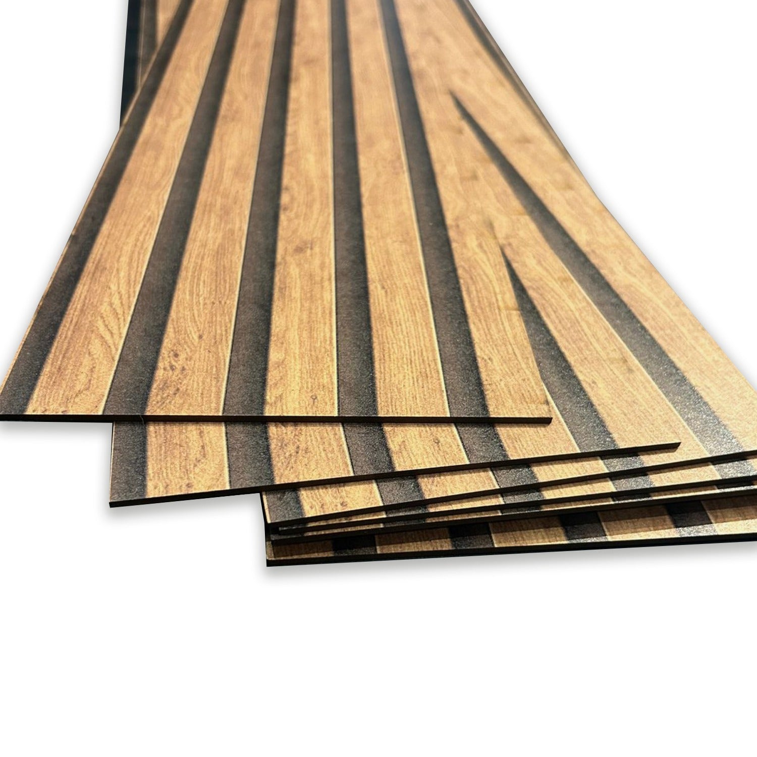 Kit com 10 Painéis Autoadesivos de Madeira Frisada