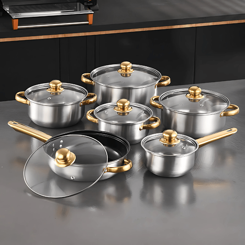 Jogo de Panelas Antiaderentes em Inox com Utensílios