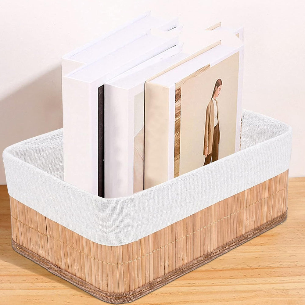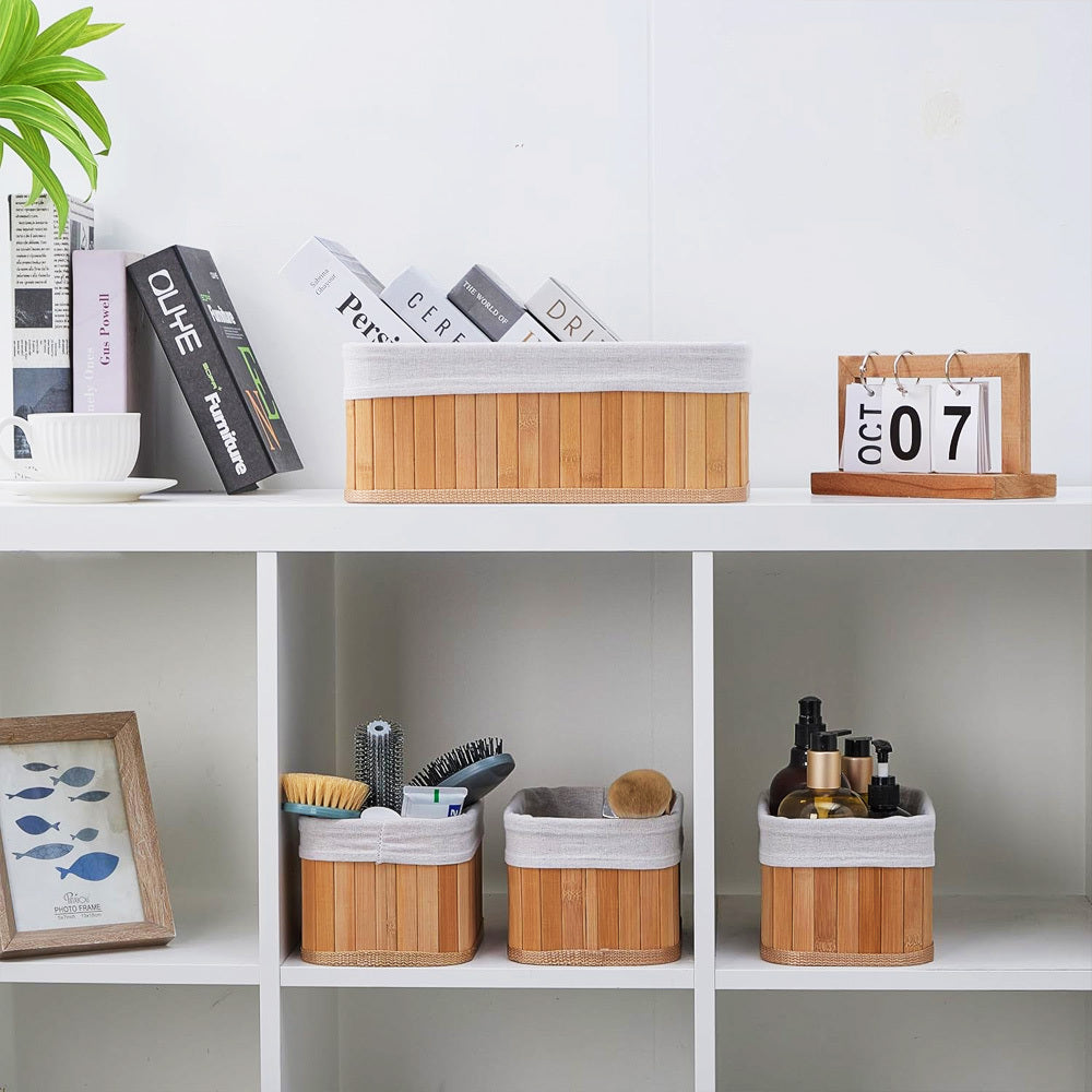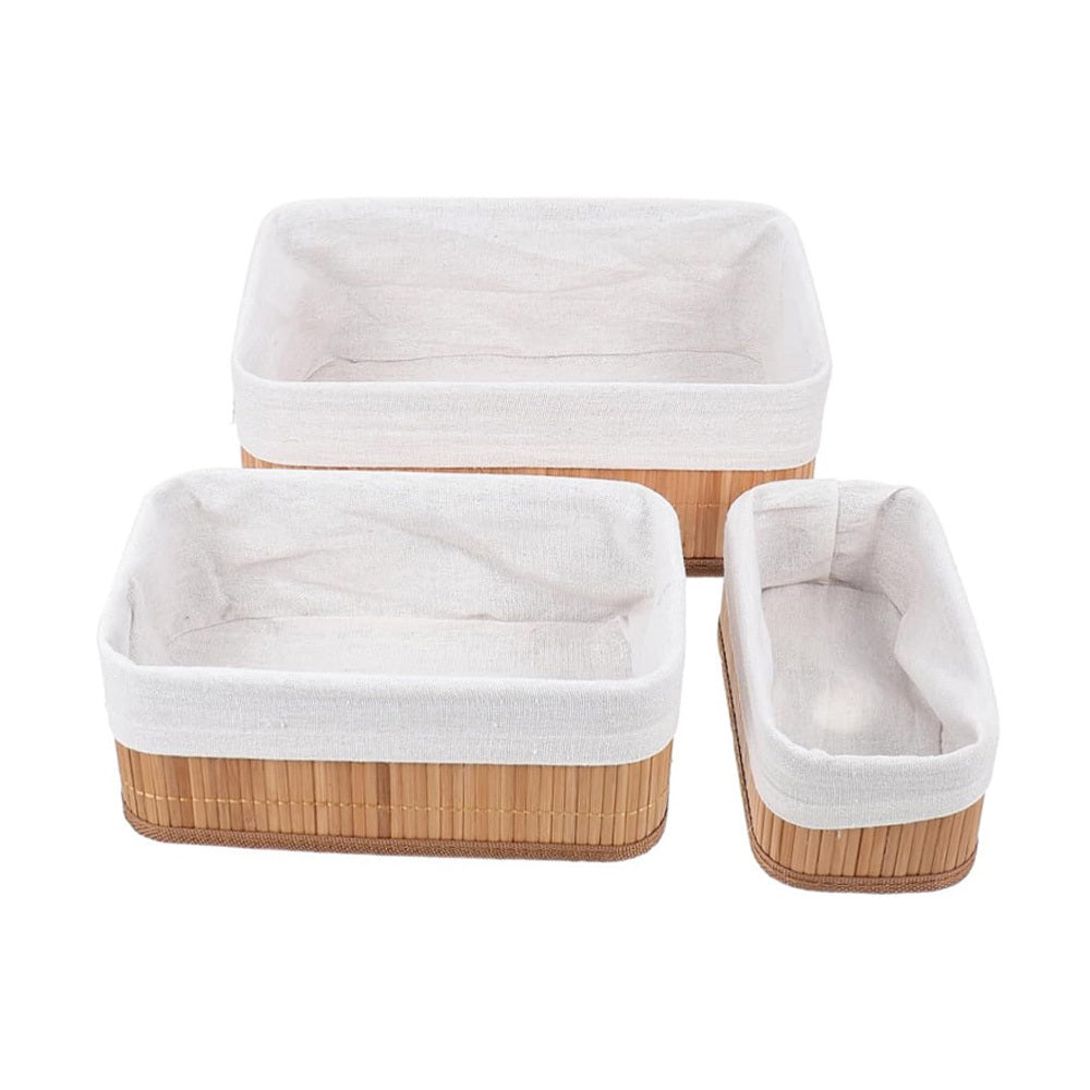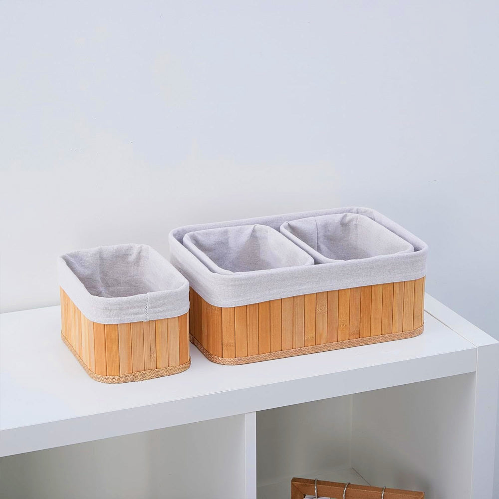 Conjunto com 3 Cestos Organizadores de Bambu com Forro
