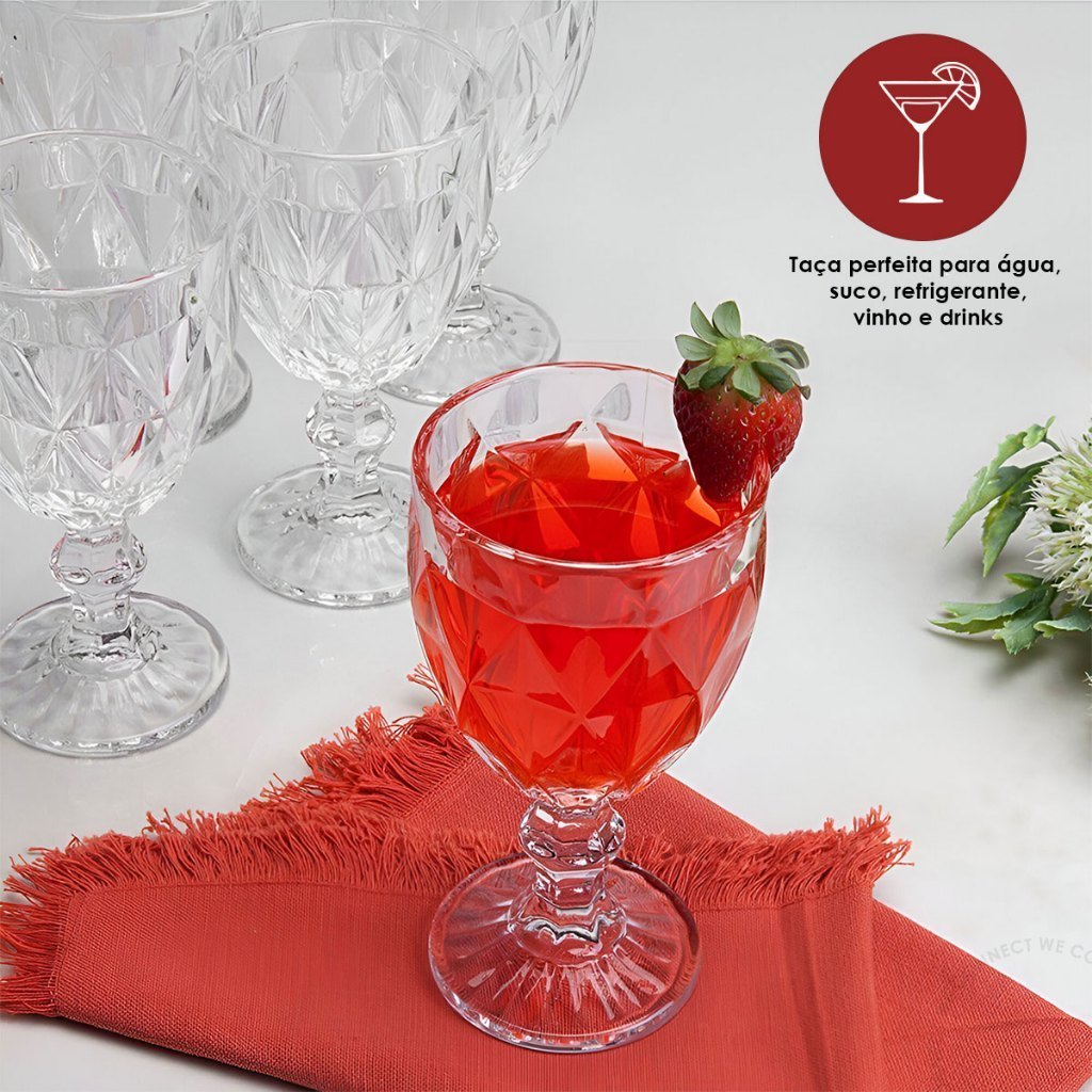 Jogo de Copos de Vidro Diamantado Transparente