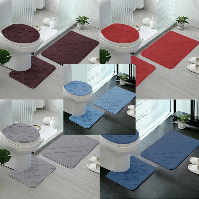 Kit de Tapetes para Banheiro 3 Peças Antiderrapantes com Drenagem Quadrada