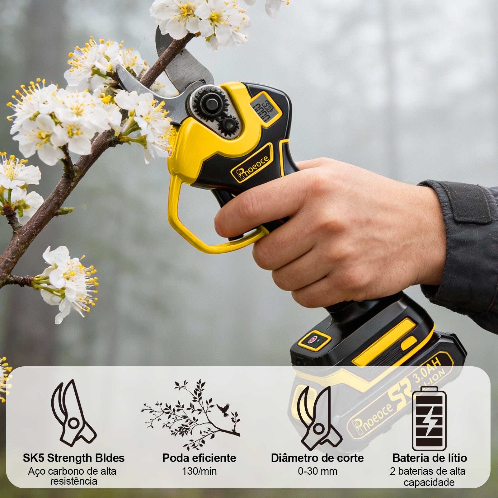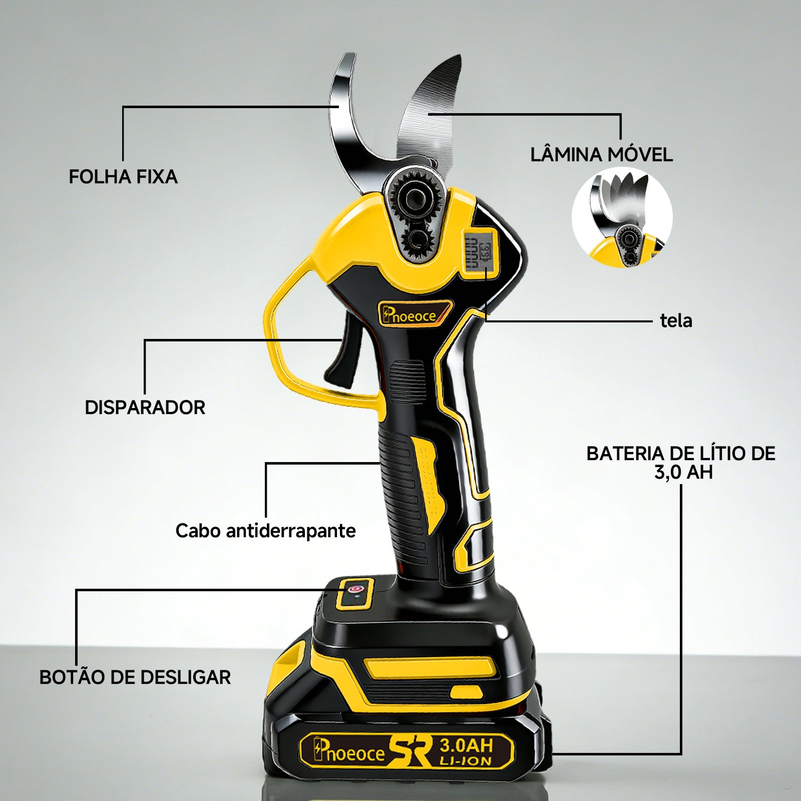 Tesoura de Poda Elétrica Profissional com Display LCD e Trava de Segurança