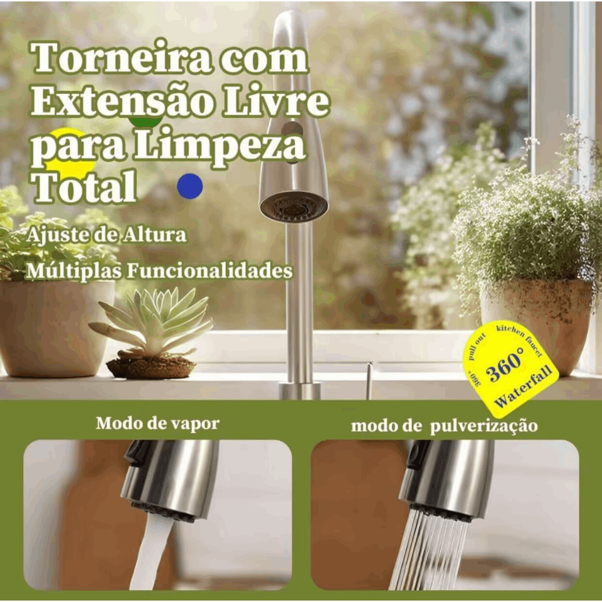 Torneira de Cozinha Gourmet em Aço Cromado com Extensor