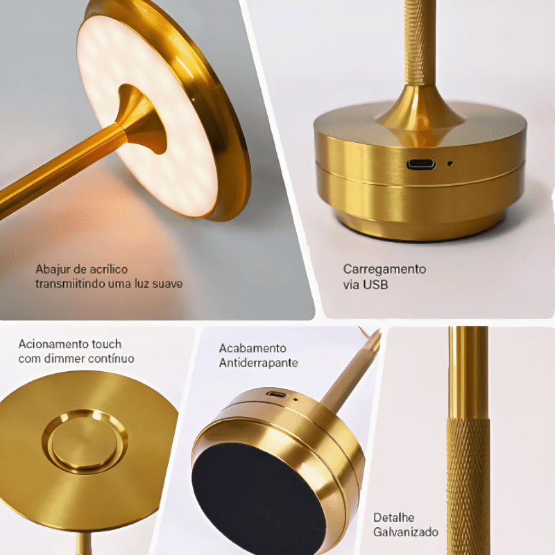 Abajur de Mesa LED Touch Recarregável para Leitura
