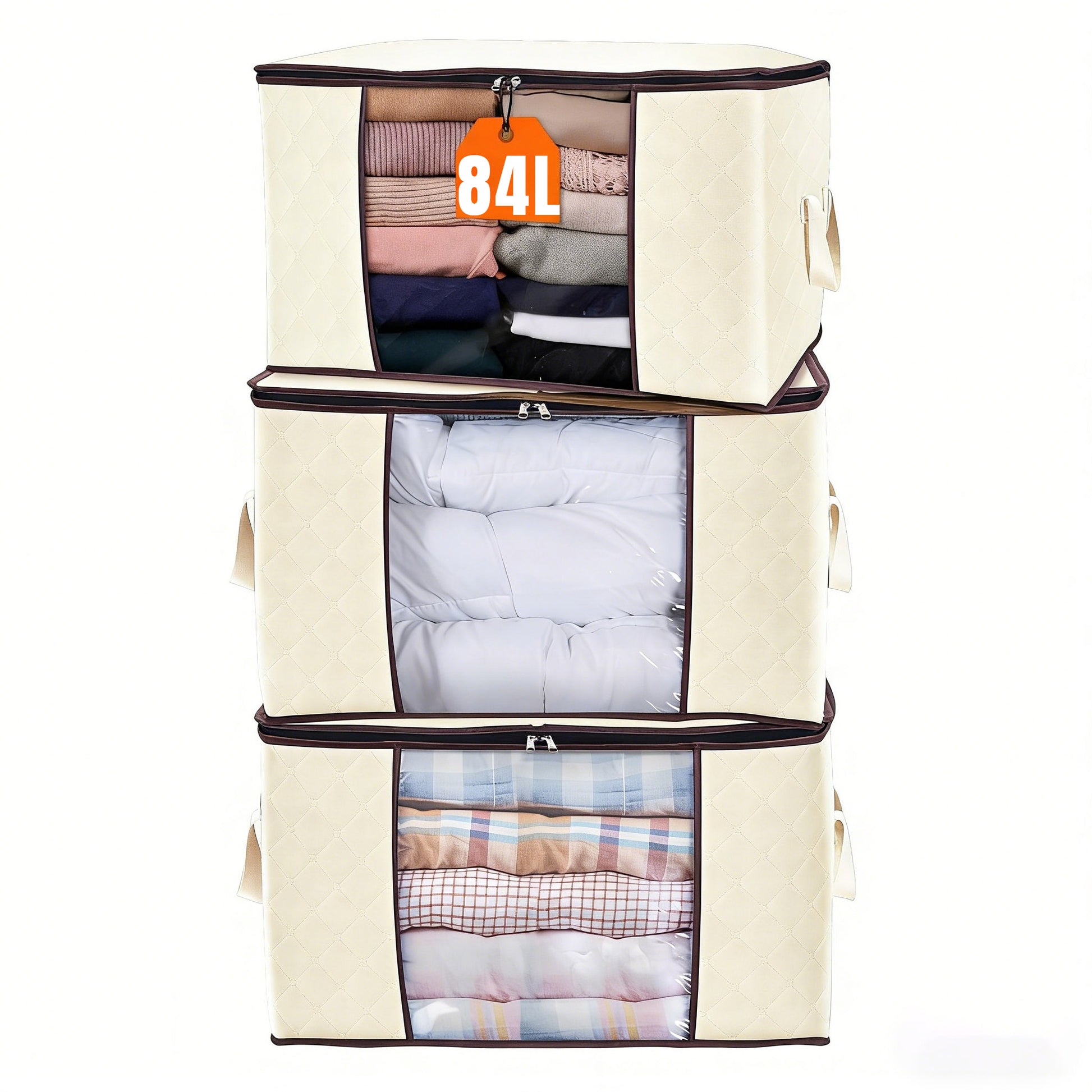 Conjunto com 3 Caixas Organizadoras 84L com Tampa Multifuncional